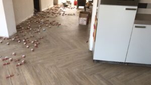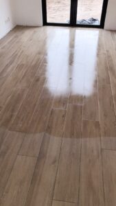 Klant heeft vloertegels uit onze serie Woodline uitgekozen voor de gehele begane grond vloer. Woodline, oftewel houtstructuur, heeft de warme uitstraling van hout maar de