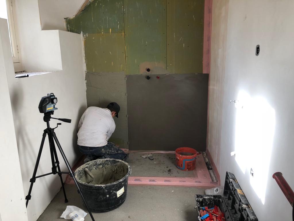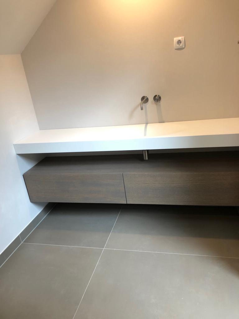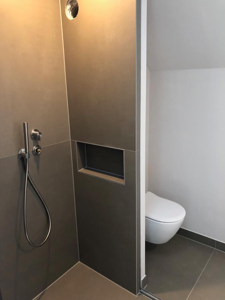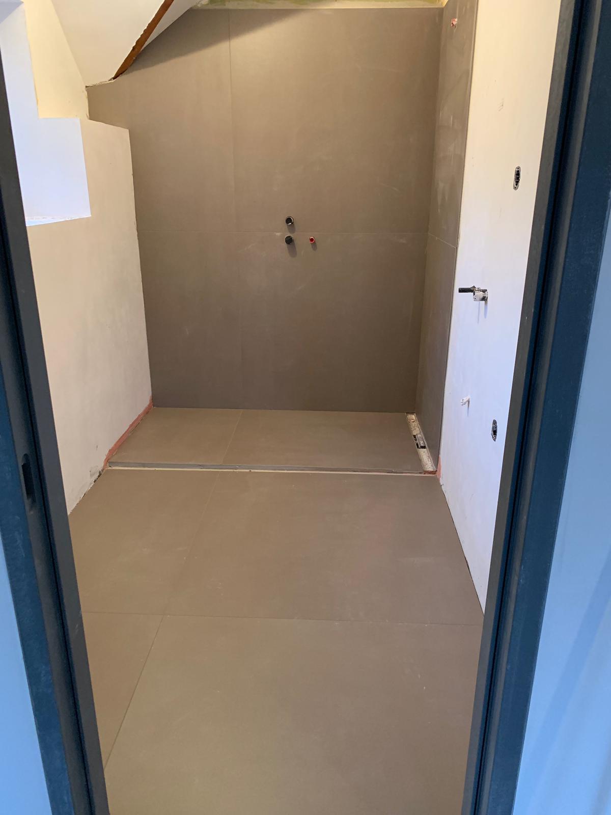 Bij dit project in Heesselt zijn de badkamers door ons betegeld met Neolith platen in de varianten Iron Moss en Barro. Weinig voegen, makkelijk in onderhoud!