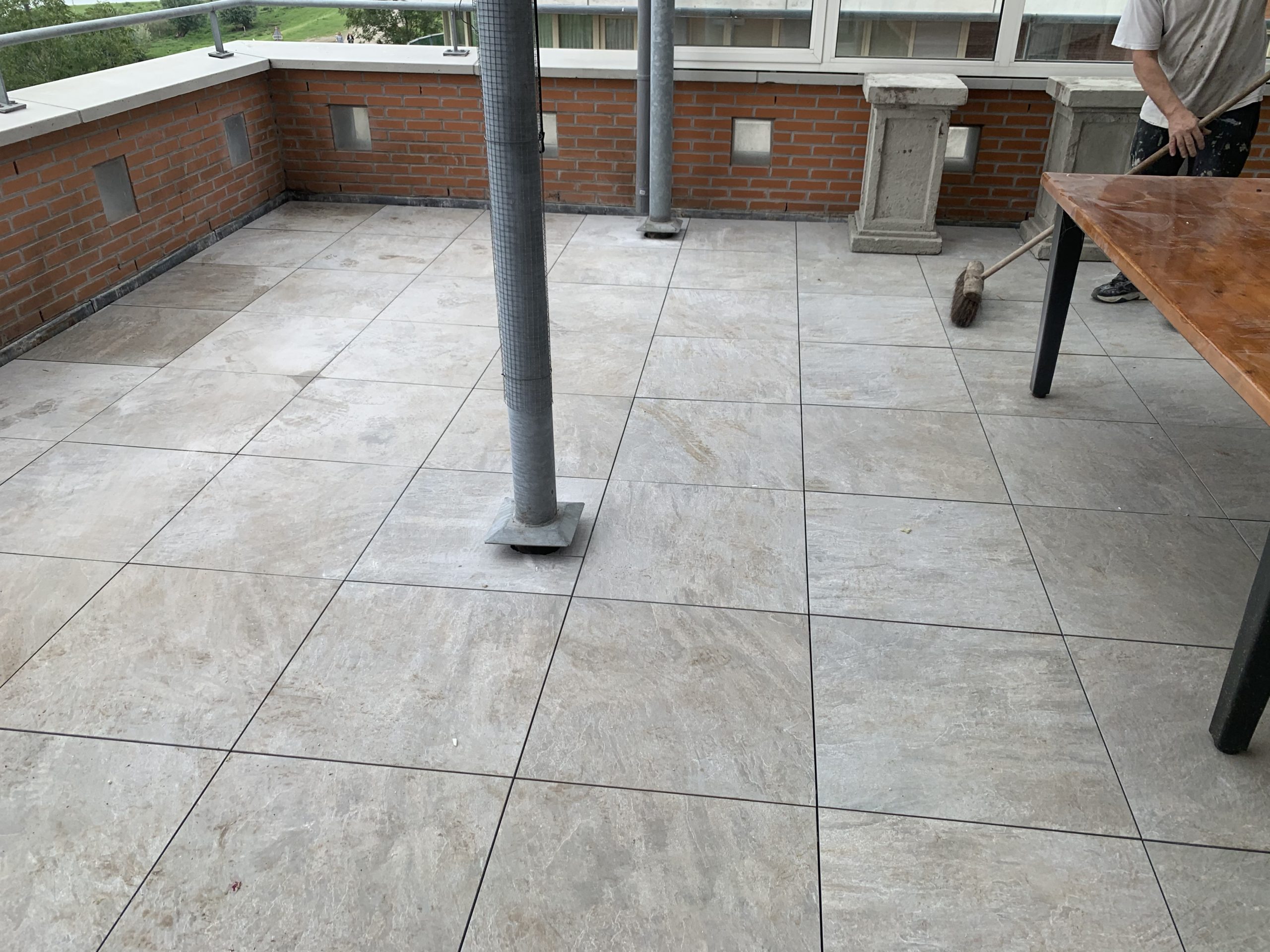 Met het plaatsen van keramische tegels toveren we het dakterras om van vuil, glad en rommelig naar een veilig, vlak terras met een luxe uitstraling. Zo ook bij dit dakterras in Den-Bosch waar gekozen is voor de keramische buitentegel Andes Grigio in het formaat 60×60, 2 cm dik.