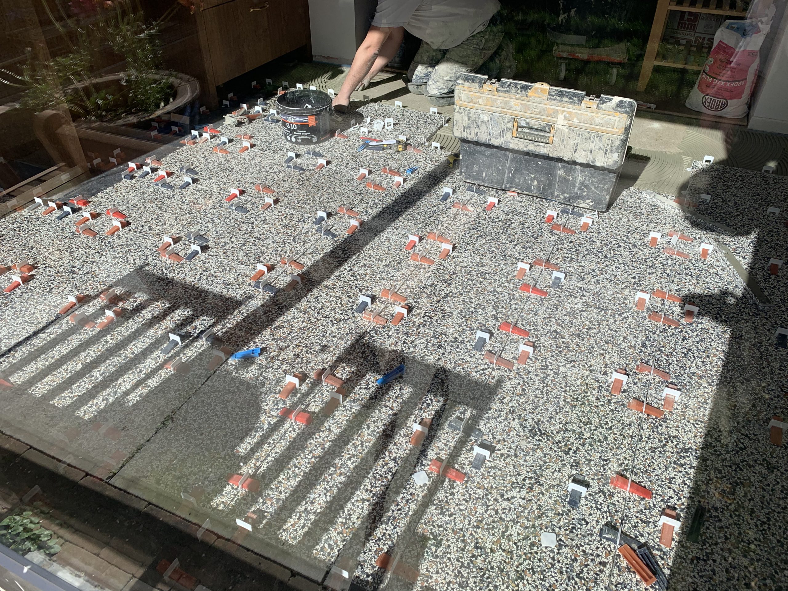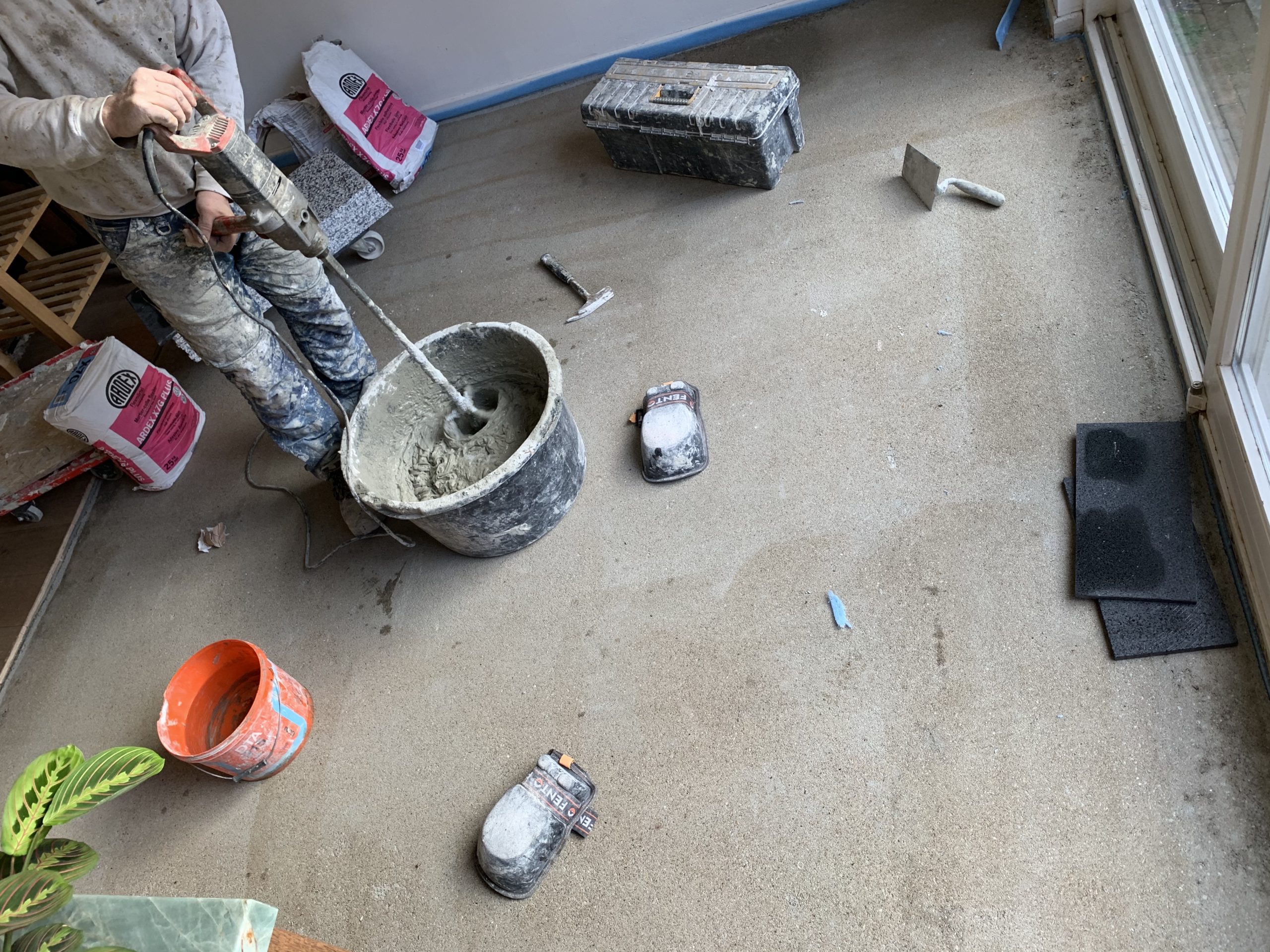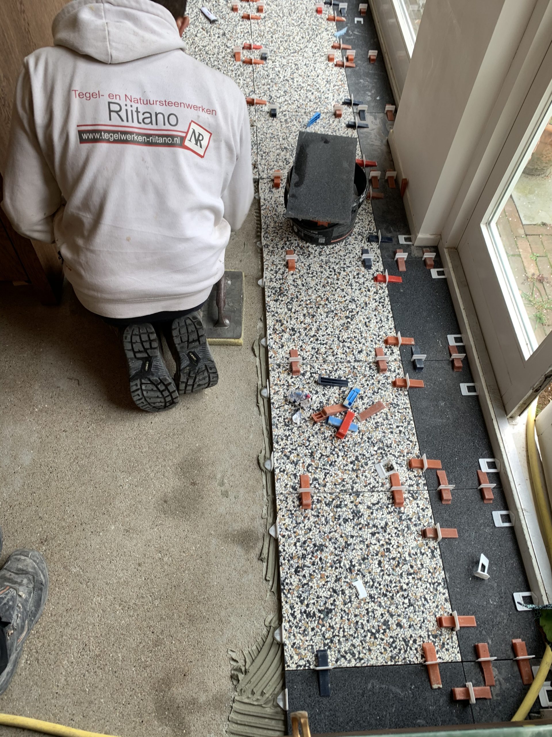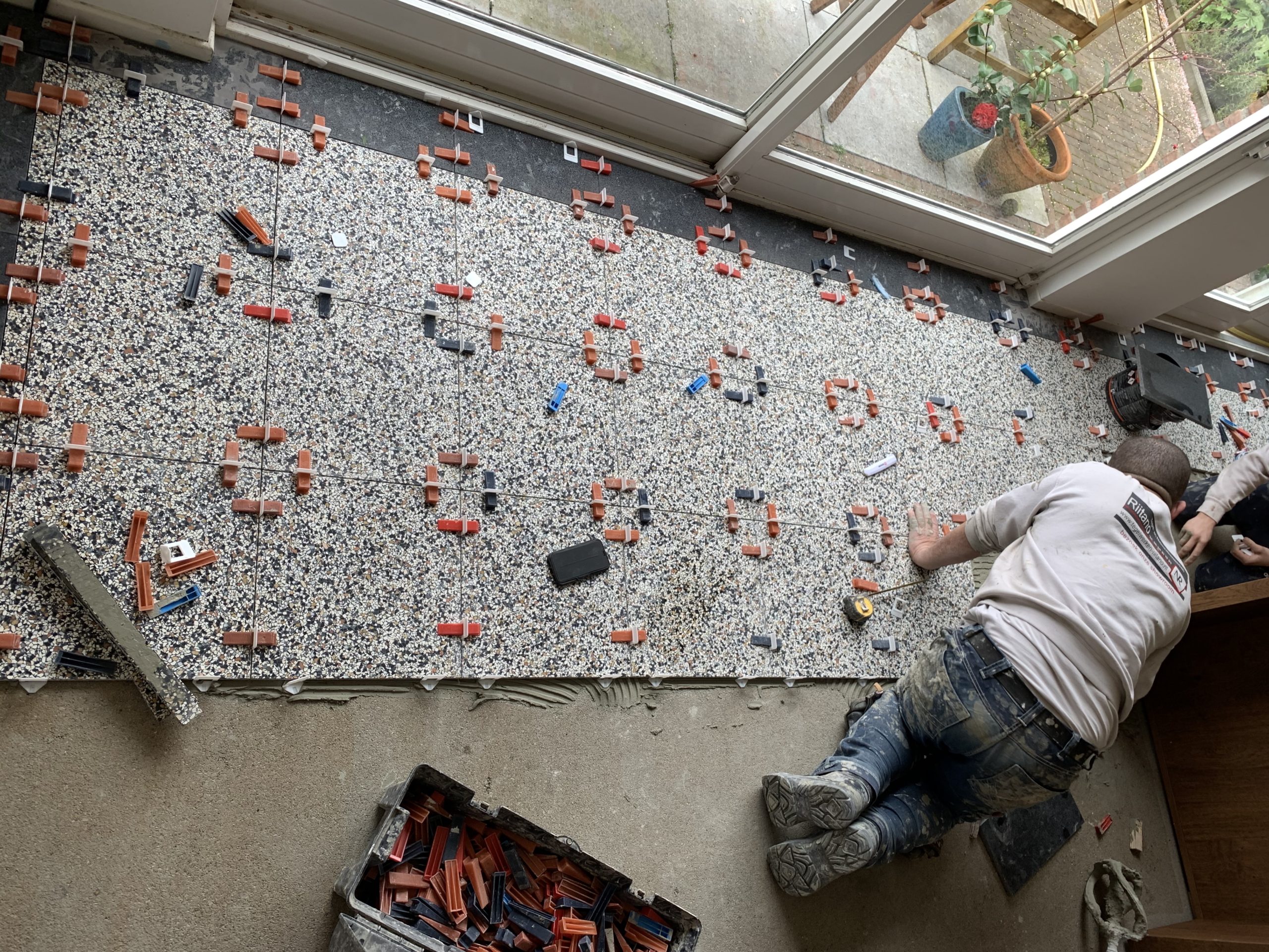 In dit project is er gekozen voor Stoneline granito Roma als lichte variant en als donkere buitenrand de Stoneline granito Milaan. Beide in het formaat 40×40. Zowel het leveren als het uitvoeren van het tegelwerk is door ons uitgevoerd. 1 aanspreekpunt .. wel zo handig! Het resultaat? Dat mag er wezen, een mooie vloer met een natuurlijke, luxe uitstraling.
