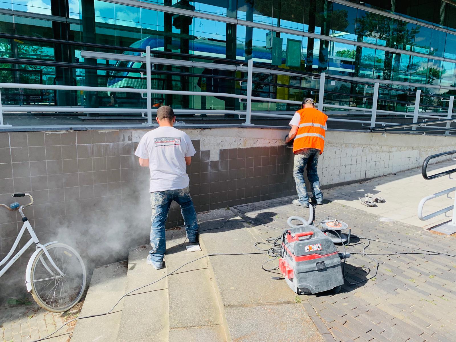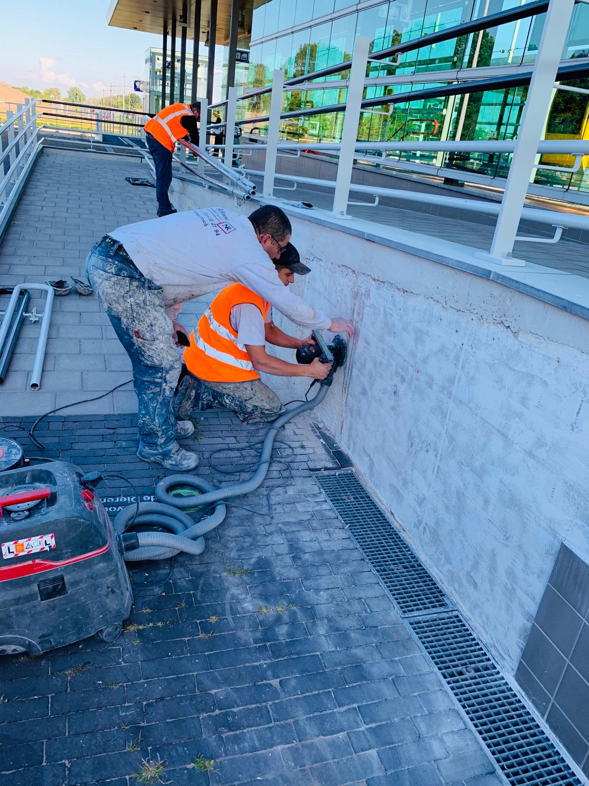 Bij het NS-station in Tilburg zijn alle gescheurde en losse wandtegels door ons verwijderd en opnieuw aangebracht. Na het verwijderen van de tegels hebben we de wanden gefreesd zodat de ondergrond goed vlak is. Hoe vlakker de ondergrond, hoe strakker de wandtegels en hoe mooier het resultaat.