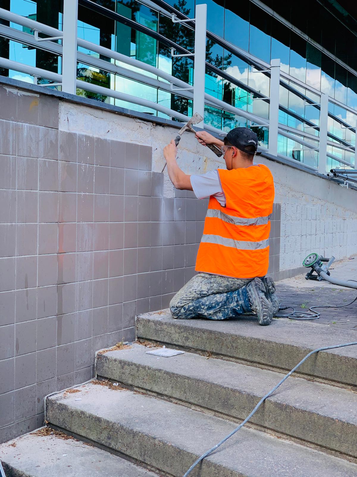 Een perfecte opdracht in de zomer! Wandtegels vervangen in de buitenlucht.